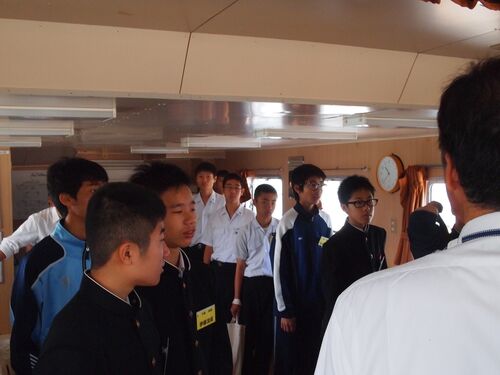 一日海上実習 10月10日(木)・・・晴れ 3年間で一度だけ(3年生のみ実施)の一日海上実習に行ってきました。 今回は雲仙市の小浜港へ行きました。 以下、生徒会メンバーだけでなく、クラスメイトの感想(一部抜粋)を紹介します。 普段と違ったポンツーン(浮き…