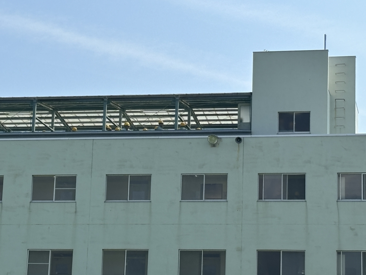次に、震度6の地震が発生し約30分後に津波が押し寄せるという想定で、寮屋上に全員避難し、津波注意報が解除されたため、地震防災隊が発令されたという「防災訓練」です。